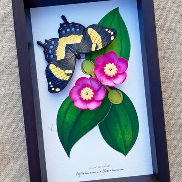 Antillean Charm collections are a unique twist on traditional nature illustrations. Life-like, hand sculpted and hand painted, the ceramic flora and fauna, mounted on canvas in solid wood shadow boxes are unique wall decor and delightful gifts.